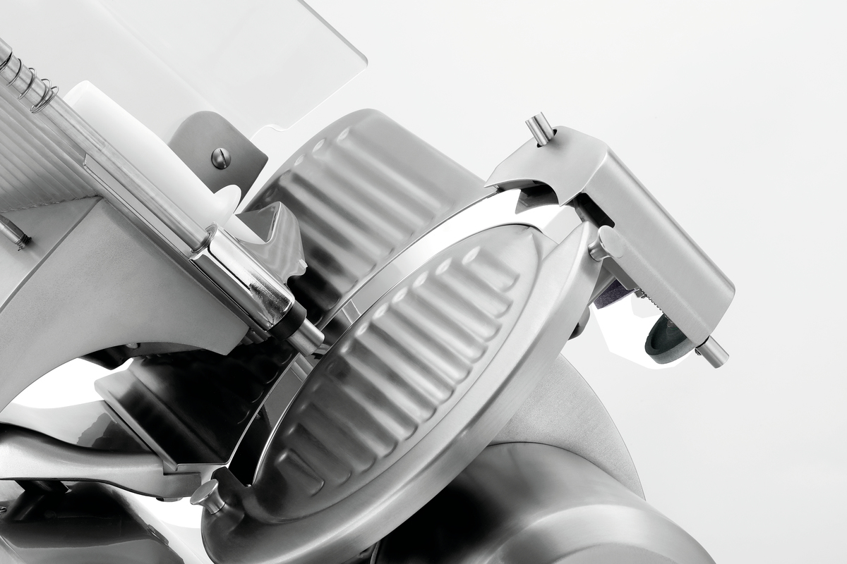 Leistungsstark und wartungsarm – die Getriebe-Aufschnittmaschine mit integriertem Messerschleifer ist ausgelegt für das Schneiden von Wurst und Käse. Für den anspruchsvollen Einsatz in Großküchen- und Metzgereibetrieben.
