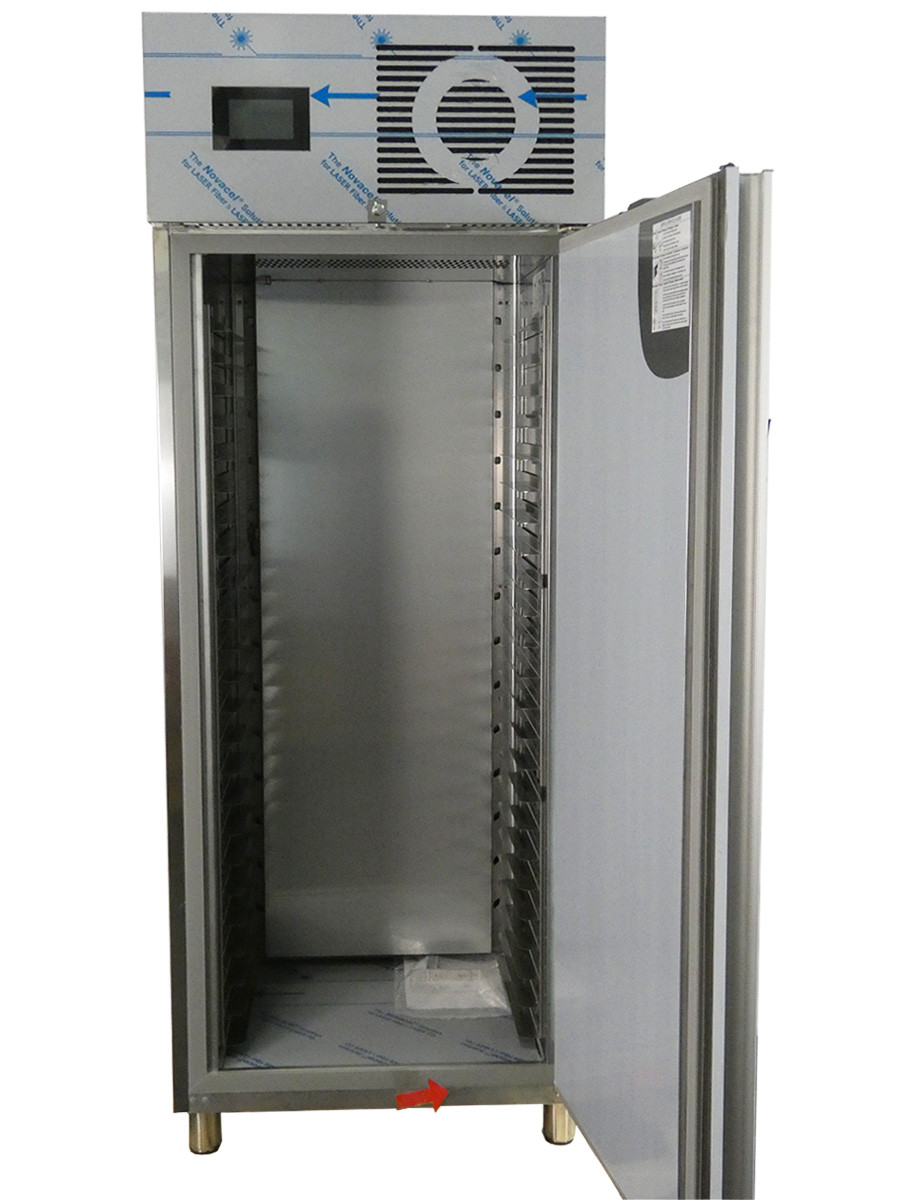 zentralgekühlter Kühlschrank für Schokoladen, Pralinen und Gebäck,Temperatur -3°C/+18°C,Fassungsvermögen: 422 lt, für Bleche 400x6000 mm, Regulierte Luftfeuchtigkeit,Umlaufkühlung,5-Zoll-Touchscreen.,Verstärkte Isolierung,Intelligentes Abtauen,Einstellen der Lüftergeschwindigkeit,Temperatur- und Luftfeuchtigkeitseinstellungen für Pralinen,Komplett aus Edelstahl gefertigt, E-Ventil f. R134 a vorinstalliert