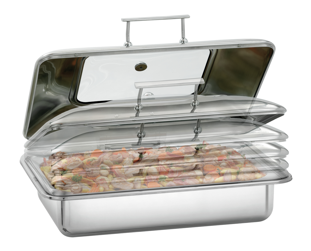 Die Nutzung dieses Chafing-Dishs in Kombination mit einem Induktions- oder Glaskeramikkochfeld bietet unbegrenzte Möglichkeiten.
