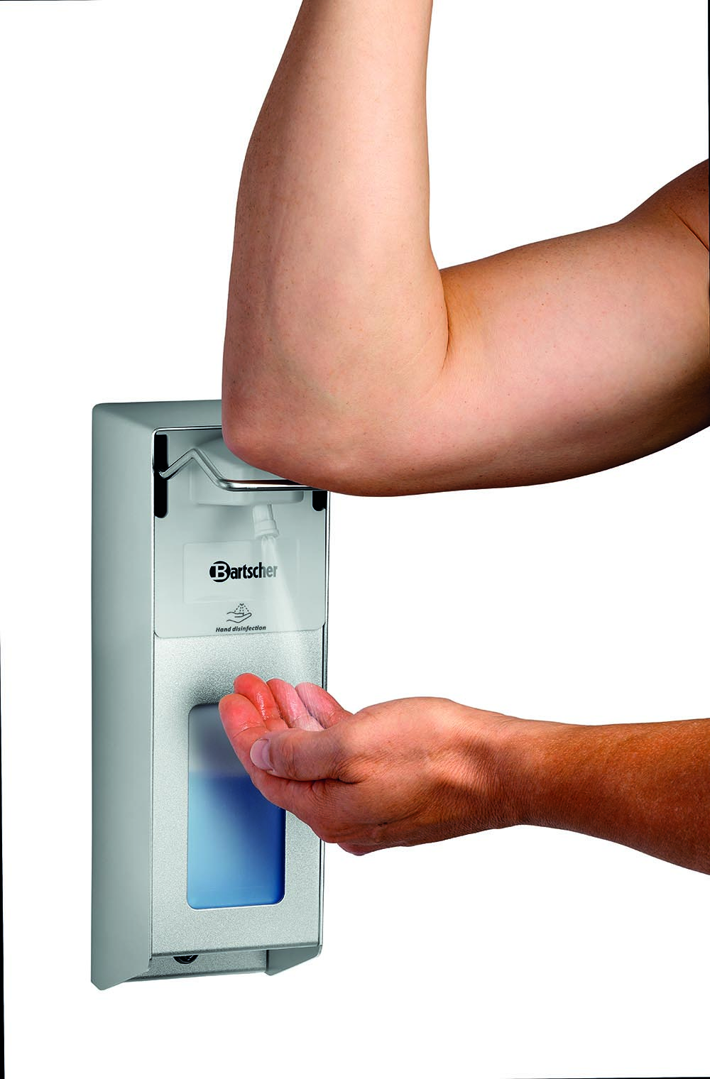 Desinfektionsspender mit praktischer Ellenbogenbedienung für optimale Hygienebedingungen in öffentlichen Gebäuden, Restaurants, Küchen, Laboren, Schulen etc.