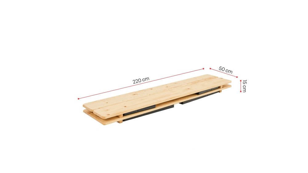 • 2x Bank 220x25 cm mit klassischem Untergestell