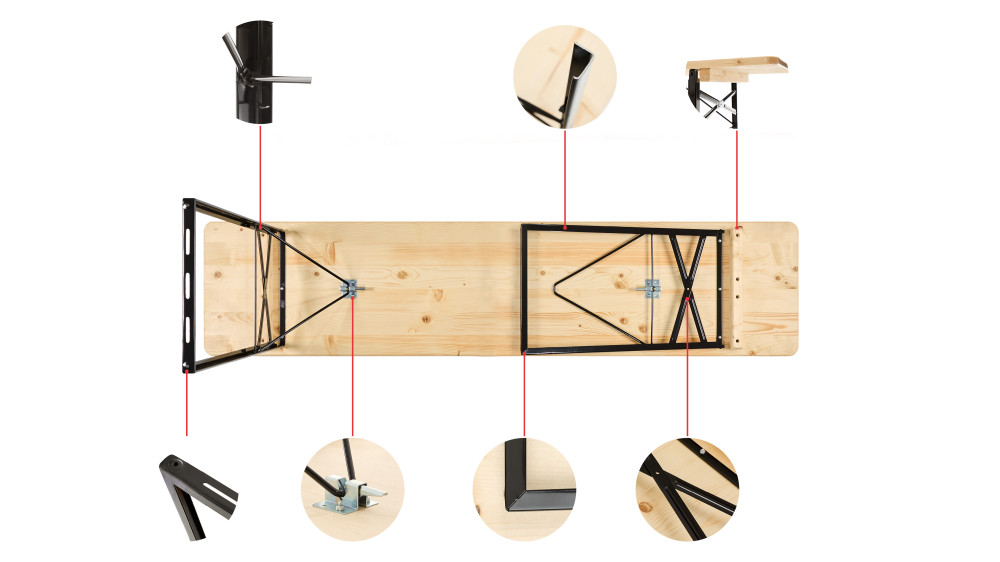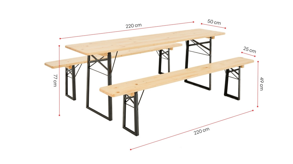 Bestehend aus einem Biertisch und zwei Bierbänken aus Fichtenholz mit einklappbaren Metallbeinen, ist die Bierzeltgarnitur 220x50 von keiner Gartenparty, von keinem Festzelt und ganz besonders nicht vom Münchner Oktoberfest wegzudenken. Verschiedenste Brauereien vertrauen alljährlich auf das Stehvermögen und die Langlebigkeit der originalen RUKU1952® Festzeltgarnitur - überzeugen auch Sie sich, fernab des größten Volksfestes der Welt, von der Brauereiqualität der Bierzeltgarnitur 220x50!