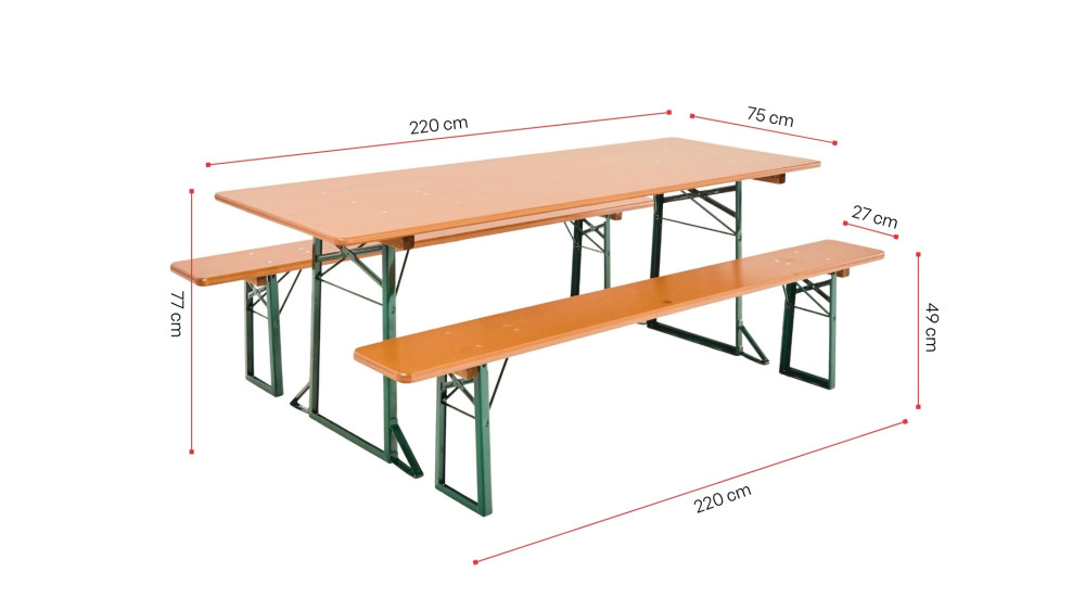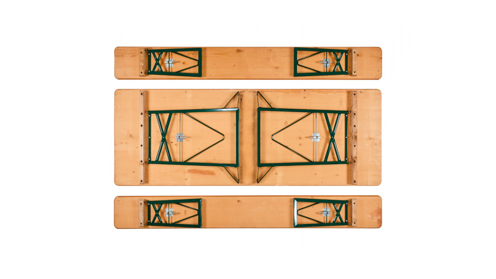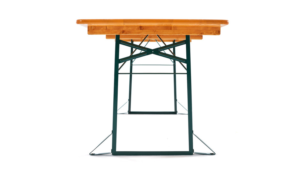 Ganz klassisch und besonders praktisch. Bestehend aus einem extra breiten Biertisch und zwei extra breiten Bierbänken aus Fichtenholz mit einklappbaren Metallbeinen, ist die breite Bierzeltgarnitur ideal für Ihren Garten, Ihr Restaurant oder das nächste Event. Der 75 cm breite Biertisch bietet im Vergleich zu einem klassischen Biertisch außergewöhnlich viel Platz, vor allem wenn sich Personen gegenübersitzen. Die 27 cm breite Bierbank verleiht Ihren Gästen darüber hinaus durch ihre etwas breitere Sitzfläche ein angenehmes Sitzen.
