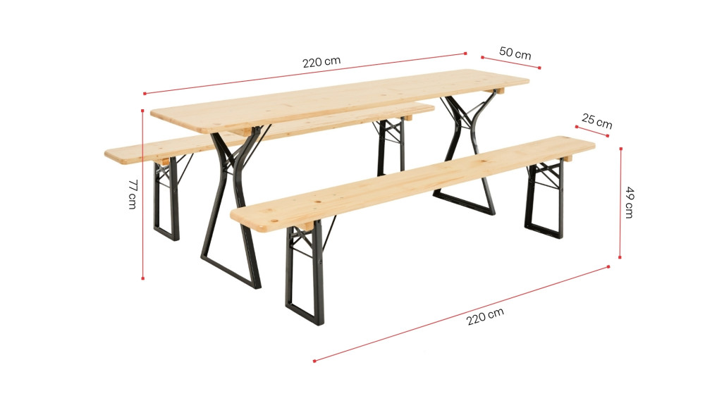 • 1x Biertisch 220x50 cm mit Untergestell mit Beinfreiheit