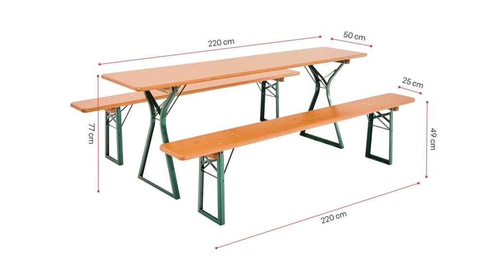 - 1x Biertisch 220x50 cm mit Untergestell mit Beinfreiheit
