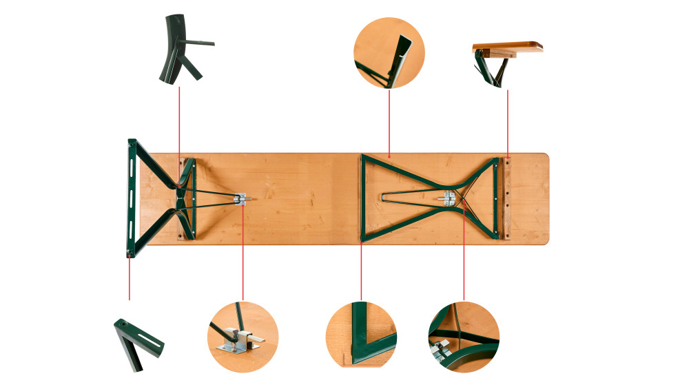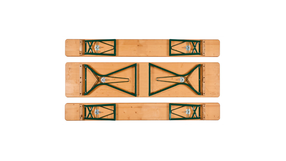 Genial... die stylische Bierzeltgarnitur mit viel Beinfreiheit! Sie zeichnet sich durch den bequemen Ein- und Ausstieg für die Füße und das elegante Design aus. Zu verdanken hat sie dies dem schlanken X-förmigen Untergestell ihres Biertisches. Dieses ist ideal bei geringen Platzverhältnissen, da die Bänke näher an den Tisch gerückt werden können und so die Garnitur im Vergleich zu einer klassischen Bierzeltgarnitur weniger Platz benötigt. Eine innovative Garnitur, speziell für Sie, wenn Sie es gerne bequemer mögen.