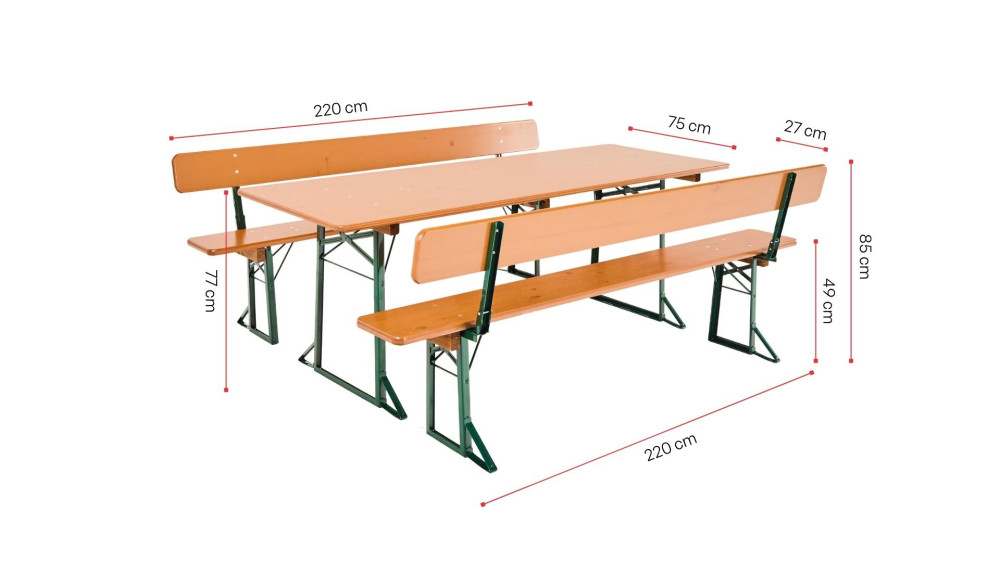- 1x Biertisch 220x75 cm mit klassischem Untergestell