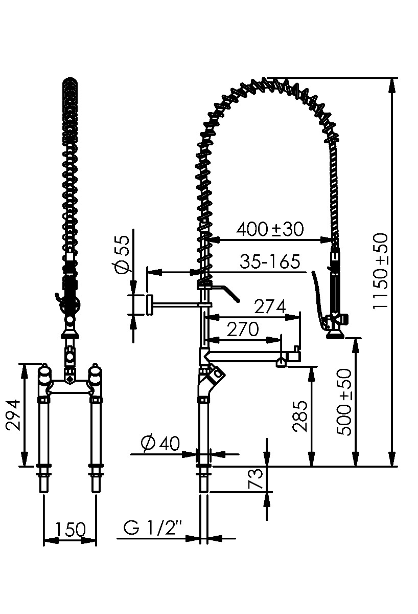 Auslaufhöhe: 285 mm - Höhe: 1300 mm