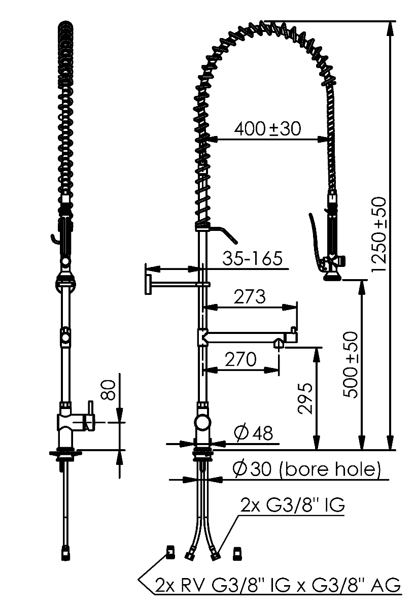 echtermann Geschirrbrause 3/8" - Hebelgriff - 270 mm Classic Clean