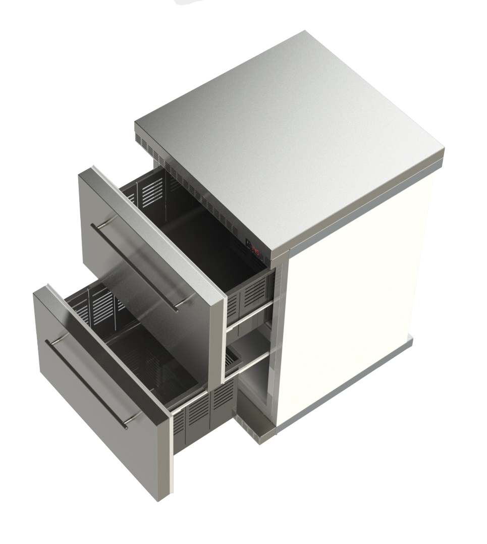 Nutzinhalt: 138L, +2°C bis +10°C, Umluftkühlung, B 600 x T 650 x H 850 mm, Schubladen, bis +32°C Umgebungstemperatur