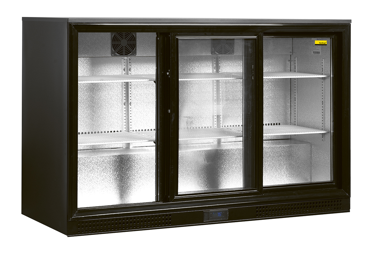 unterbaufähiger Kühlschrank mit 3 Doppelglas Drehtüren und LED Beleuchtung!