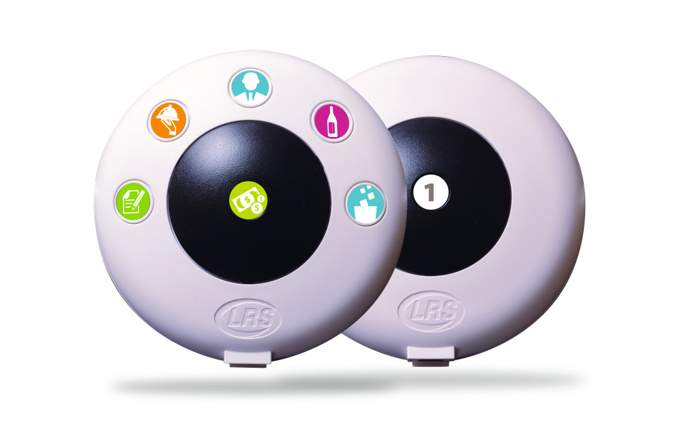 Auf Knopfdruck einen Service-Mitarbeiter informieren. Das geht mit dem Pushbutton Pronto. Nach Knopfdruck wird ein frei konfigurierbarer Text an den LRS Alpha-Pager gesendet. Entweder als 1-Knopf Gerät oder als 6-Knopf Gerät zur Auswahl verschiedener Servicewünsche.