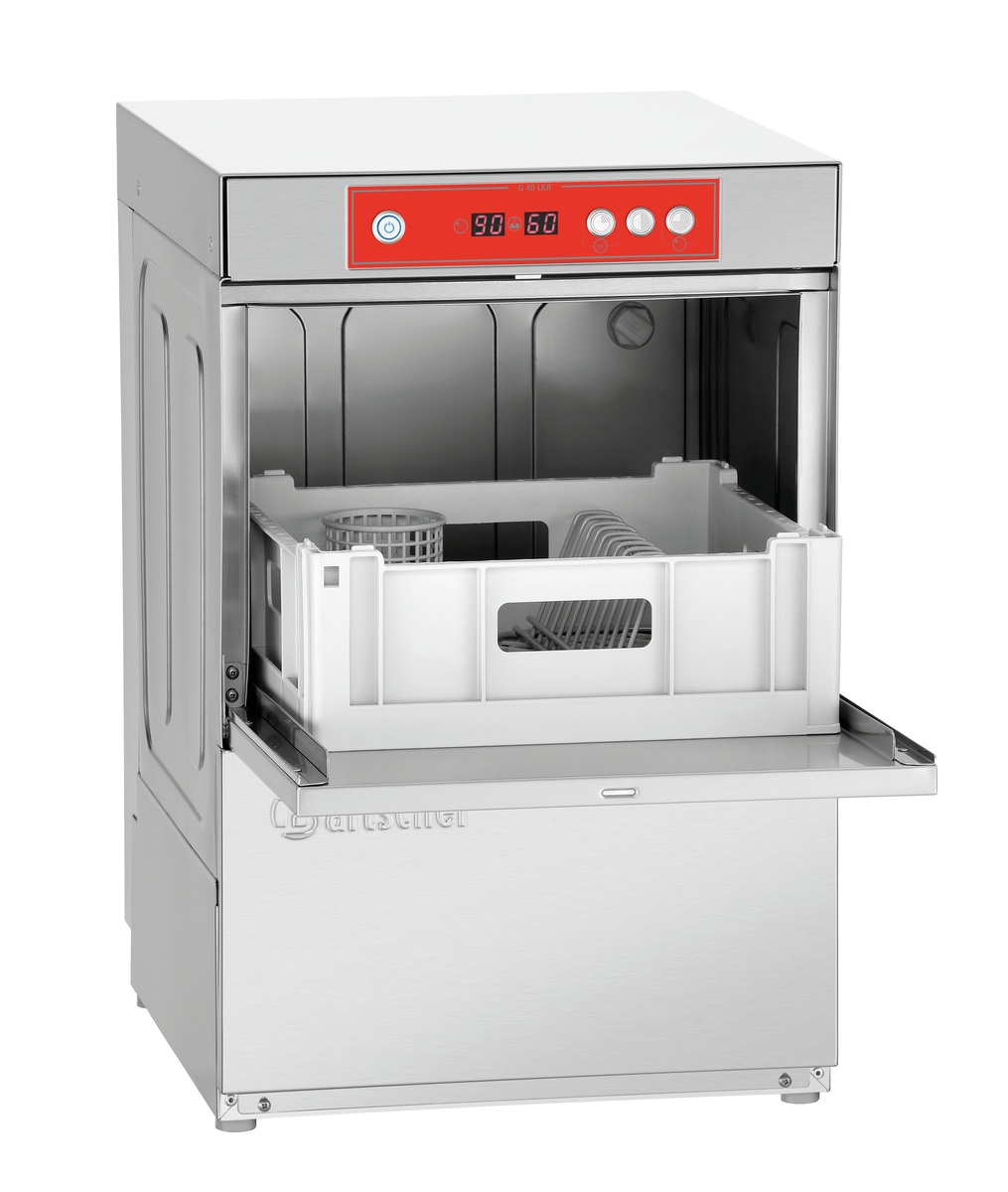 Die Gläserspülmaschine mit 3 Waschprogrammen bietet mit einem Korbmaß von 400 x 400 mm viele Möglichkeiten auf kleinem Raum. Ausgestattet mit Universalkörben, Besteckköcher und einem Tellereinsatz eignet sie sich optimal für Cafés, Bars und Cafeterien.