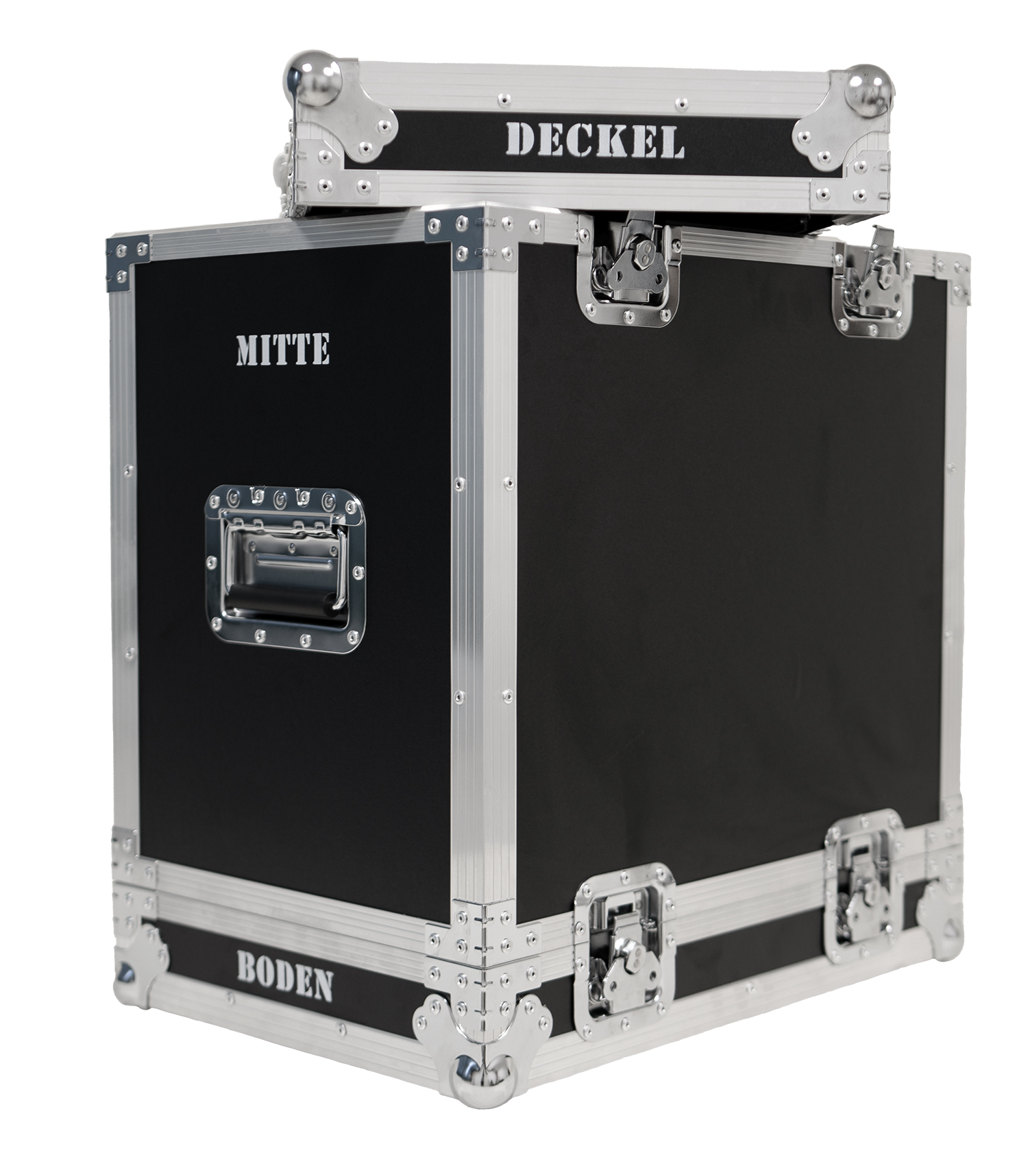- 8 Butterfly Verschlüsse um Deckel und Boden vom Transportboxkörper zu trennen