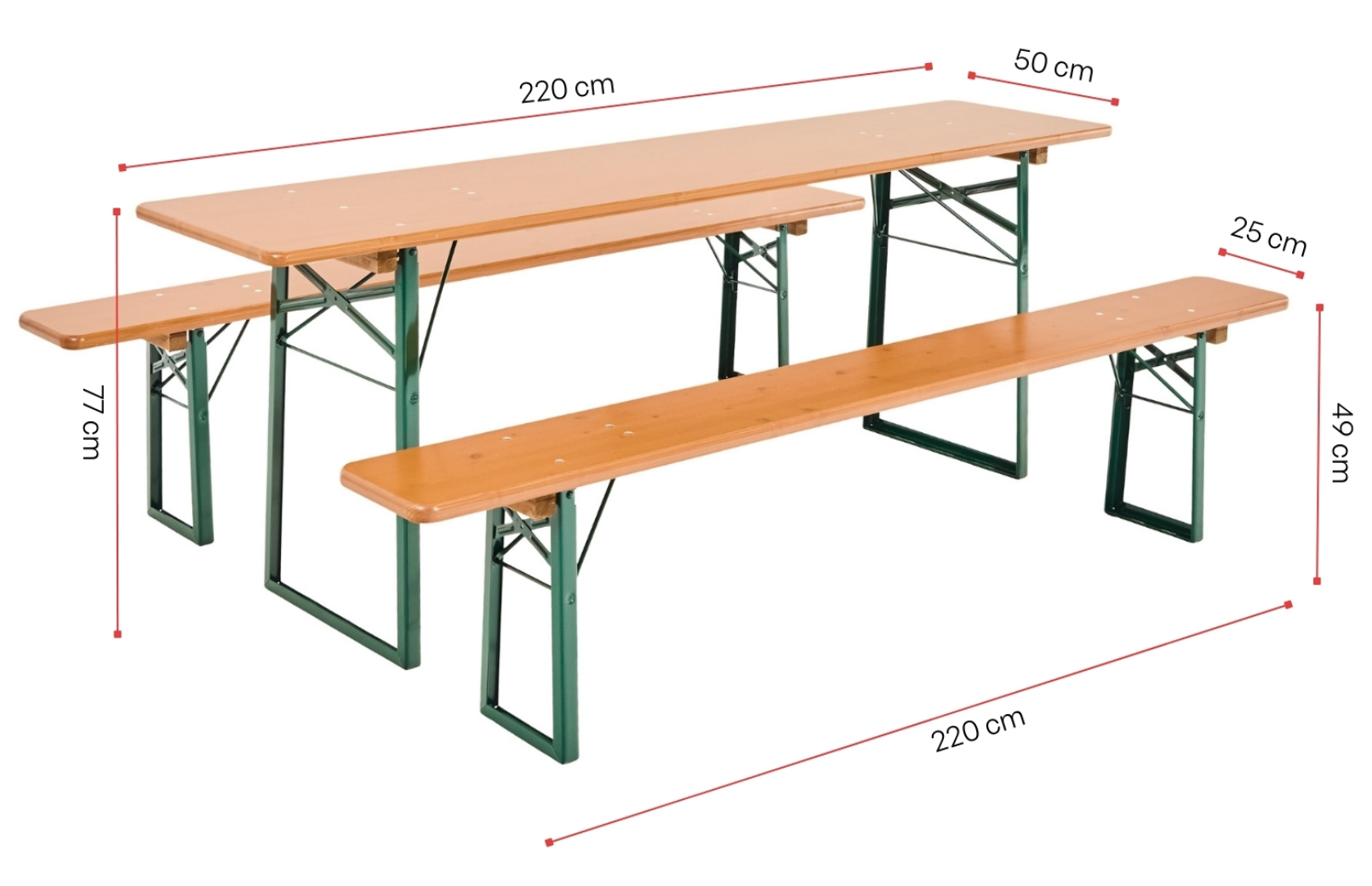 - 10x Biertisch zu 220x50 cm (Farbe Kiefer) mit klassischem Untergestell